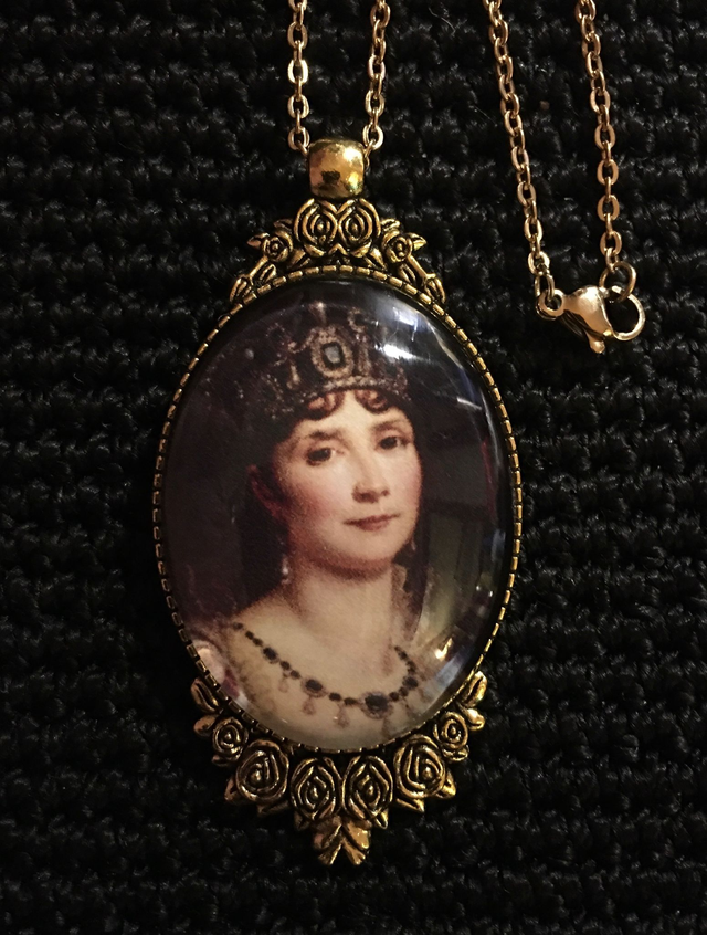Pendentif en métal doré avec cabochon en verre épais à l'effigie de Joséphine de Beauharnais.